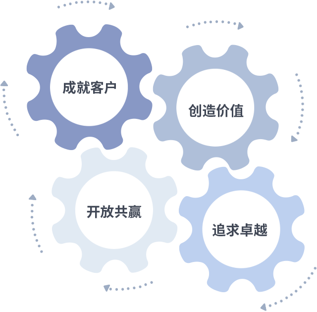 成就客户是一切决策的出发点,创造价值是衡量所有工作的标准,追求卓越是z6mg人生就是博做事做人的态度,开放共赢是z6mg人生就是博的格局也是最终的结果。价值观的齿轮环环相扣,推动着组织里的每个人不断向前。